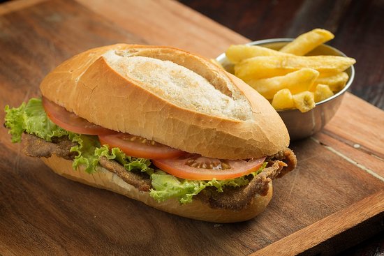 SANGUCHE DE MILANGA TRIPLE, LECHUGA, TOMATE, MAYO Y MOSTAZA.